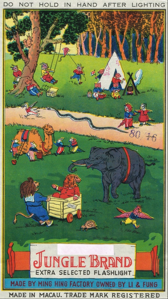 The only brand I can remember now is Black Cat. So that art comes first in this little retrospective. The other labels came from an informative online article about how the firecrackers were made and sold back in the 1950s and ’60s. Enjoy!
