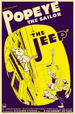 The Jeep character became a big fad, especially among children, and there were books, stuffed toys and cartoons about this loveable character, as shown by this great movie poster from 1938: