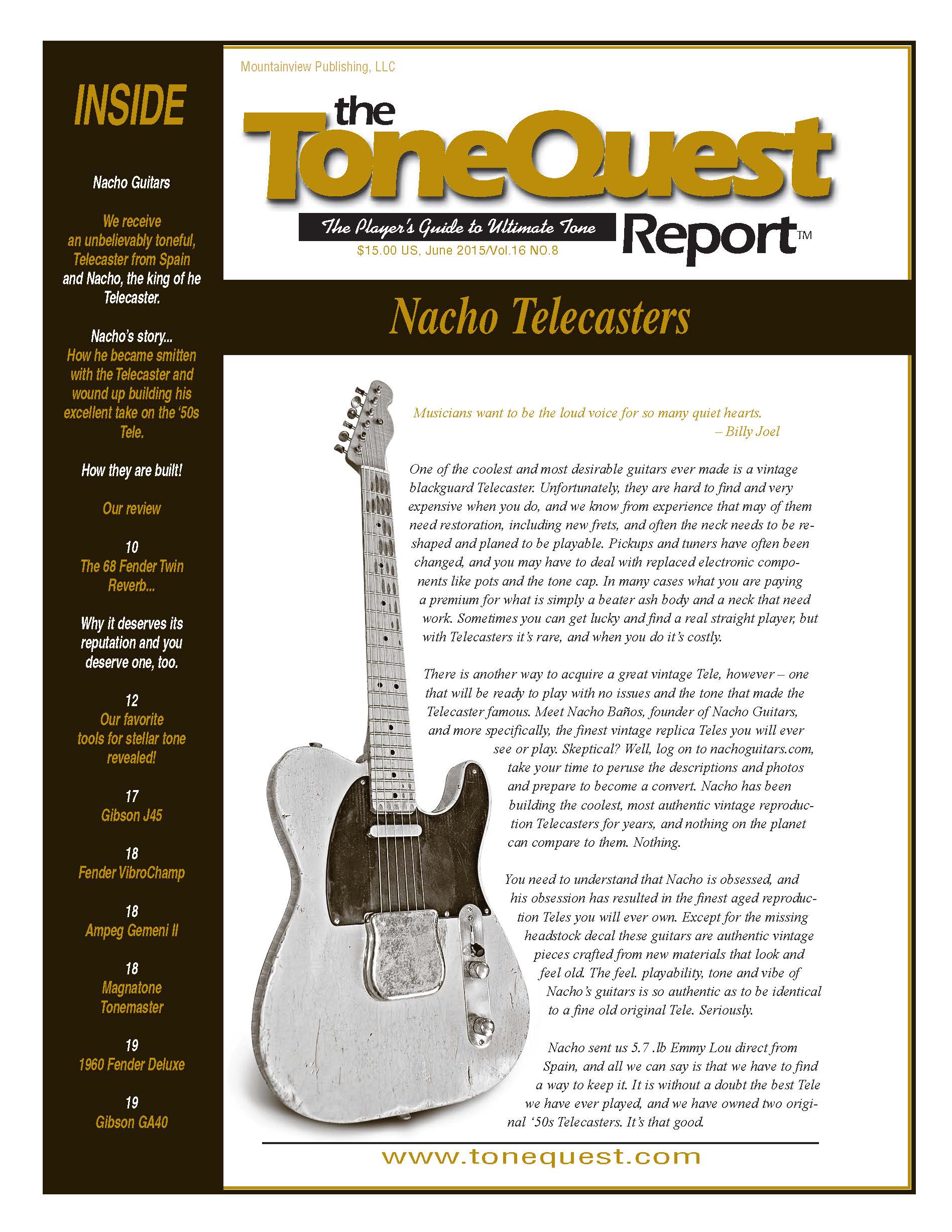 With the help of some famed guitar-slingers and old-world craftsmen, Nacho has somehow arranged to make a few reproductions of some early Telecaster and Stratocaster guitars. They are jawdroppingly accurate, and — best of all — they are sold at about a tenth of what a vintage guitar costs. As lovers of fine old paintings revere every crack in the varnish on an old masterpiece, so do those of us who love the old Fenders.