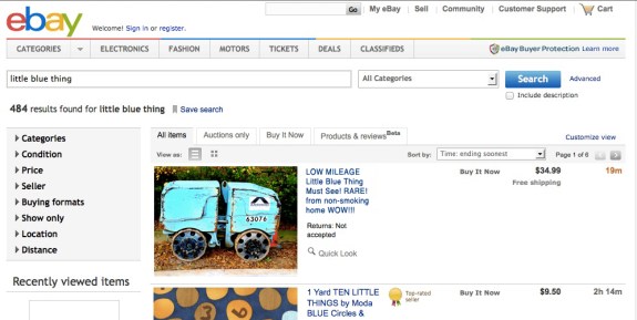 Well, as you know, there wasn’t really a Little Blue Thing for sale on eBay, at least today. But maybe one day . . .