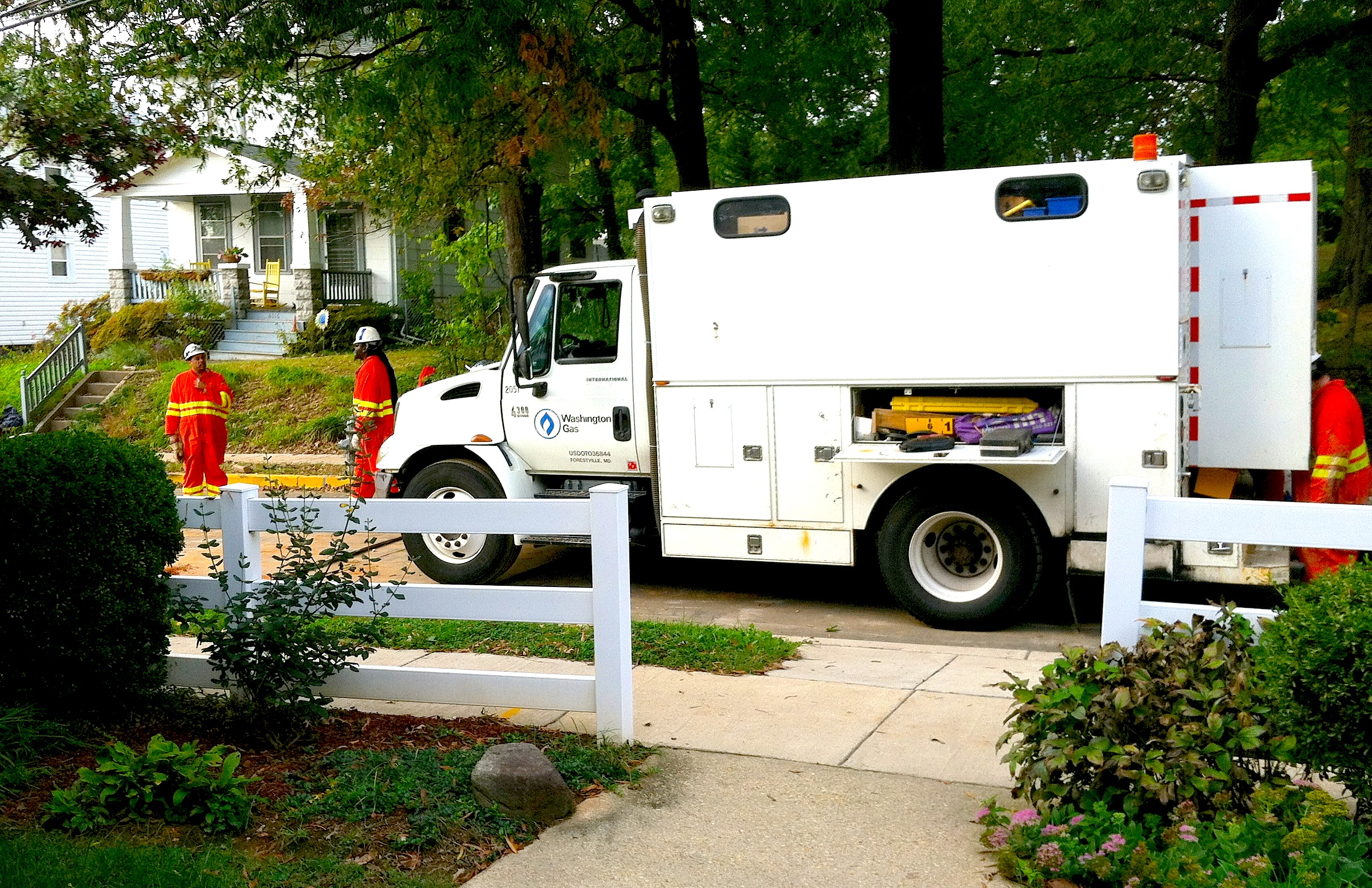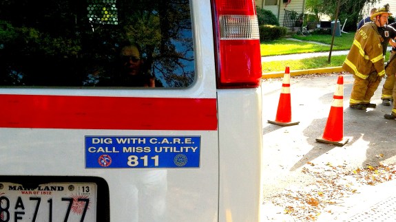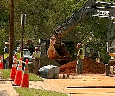 As impossible as this is to believe, today’s giant hole in the street is being dug by the WSSC contractors exactly where the Washington Gas folks need their hole to be dug, but the gas line isn’t being replaced today. This particular hole is to repair a sewage line not the gas line.